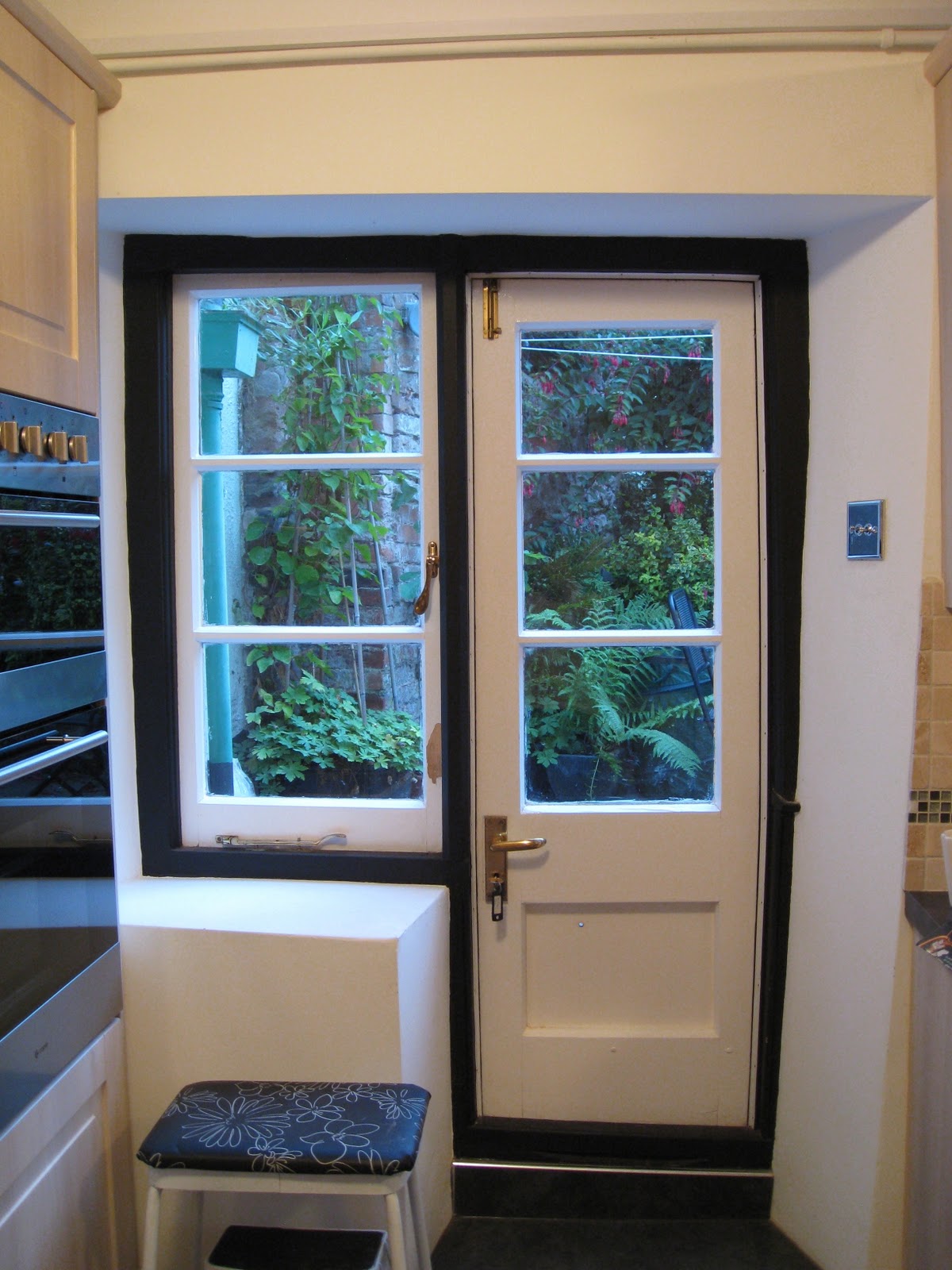 The new door will match my favourite - the small narrow door that leads from the kitchen into the garden, that even I must stoop to use, and that will ensure that I never allow myself to become so wide that I can't get through it.